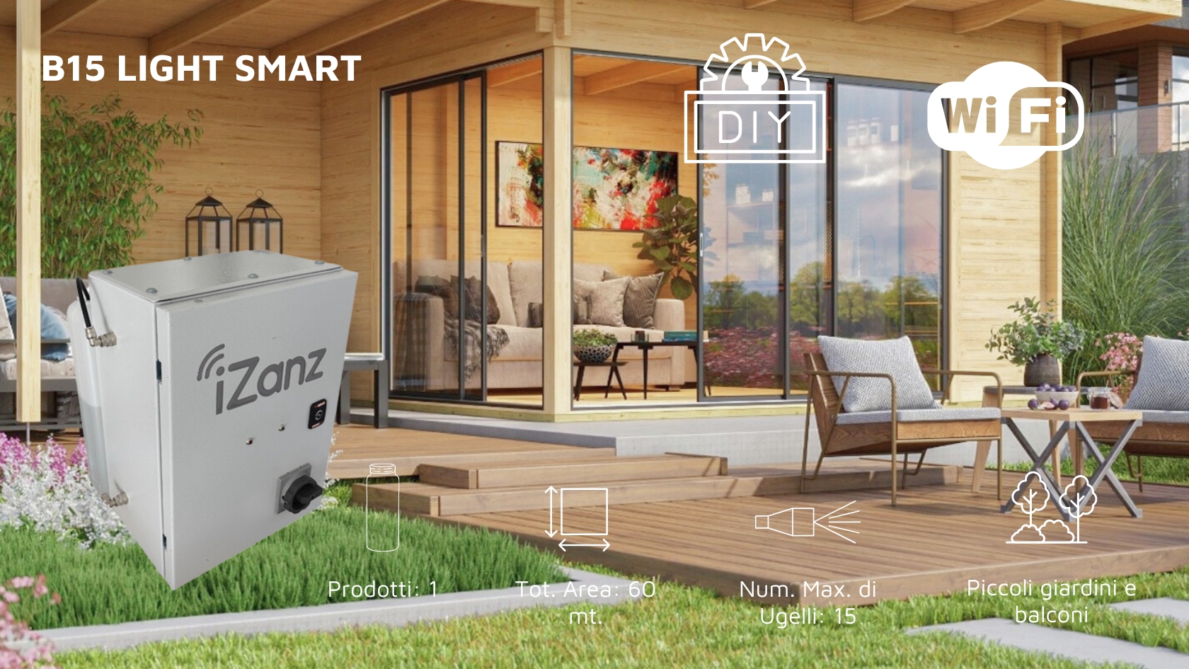 La tecnologia Smart System di iZanz è un sistema brevettato che consente il controllo intelligente e automatizzato degli impianti antizanzare. Questa tecnologia permette di calibrare la quantità di principio attivo del prodotto erogato in base alle dimensioni dell'area da proteggere, alle condizioni ambientali o alle altre richieste dello spazio e dell'utente, garantendo un'efficacia misurata e minimizzando l'impatto sull'ambiente.